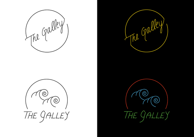 evolution of logo design for The Galley restaurant on Lopez Island, WA